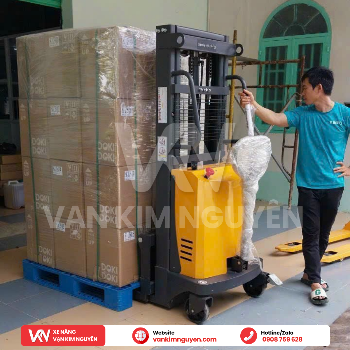 Tìm hiểu ngay: Xe nâng bán tự động 400kg chính hãng tại Vạn Kim Nguyên
